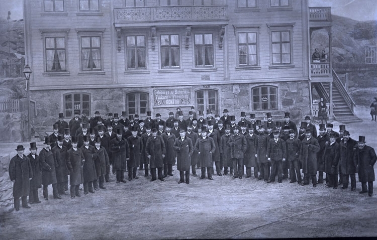 Enligt text som medföljde bilden: "Bundsens uppvaktning. Den 4 Februari 1883- Uppvaktande Lysekils medborgare. Tullinspektören E.G Bundsen, för att bringa honom sin hyllning och tack för det han under en tid av 25 år, på ett förtjänstfullt sätt varit Lysekils
