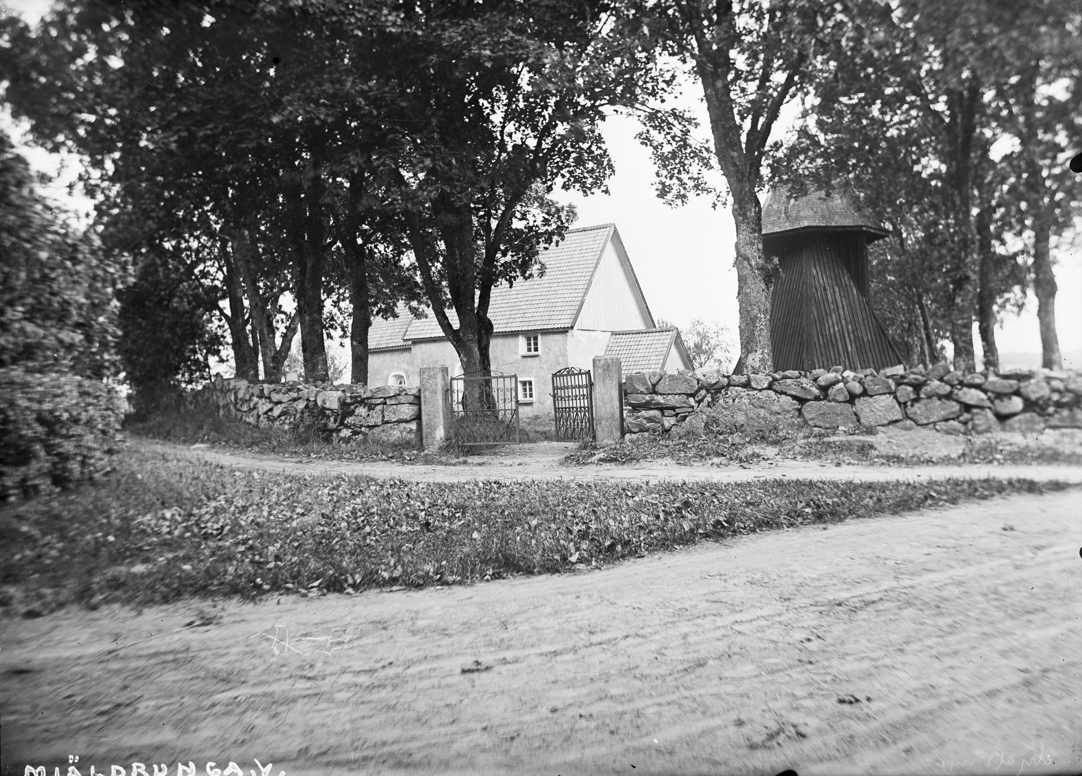 Kyrkan och klockstapeln från nordväst. Snabbinv.