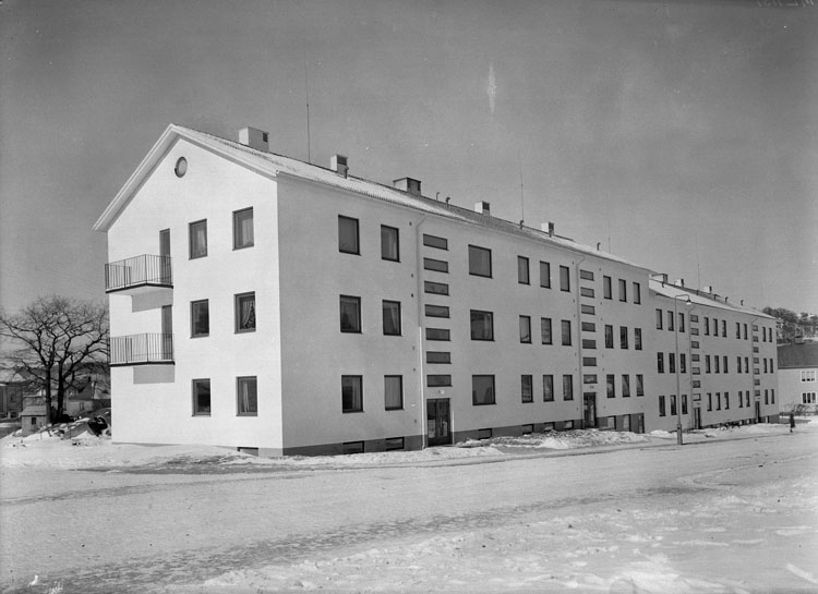 Uppgift enligt fotografen: "Uddevalla. Fastigheter vid Skolgatan."