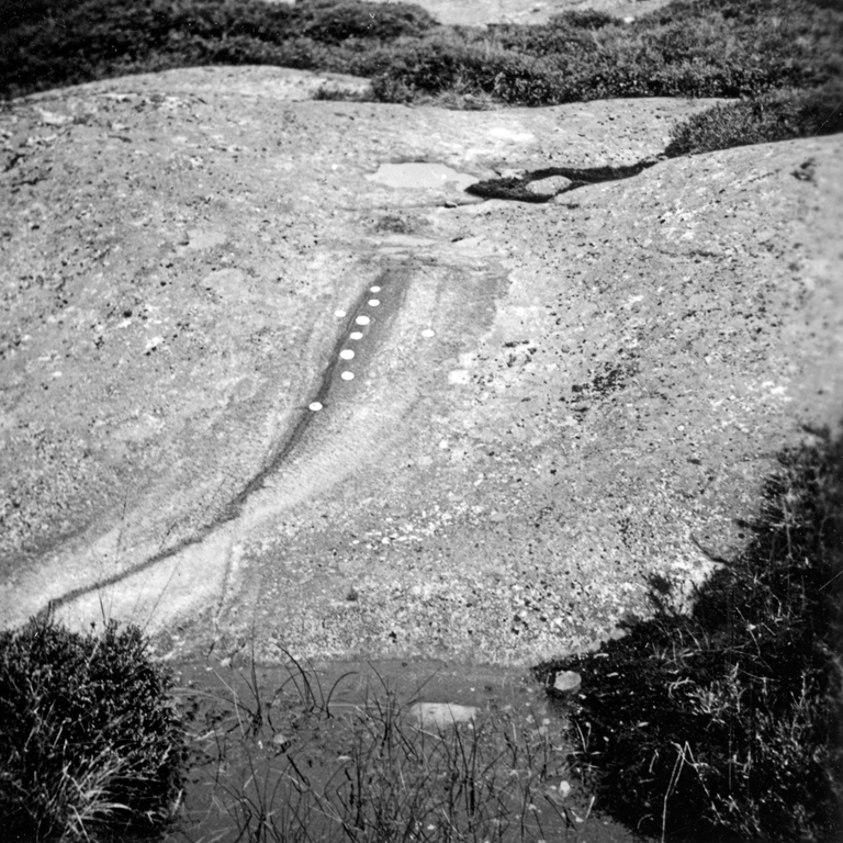 Enligt text: "Tuvene, Skärperöd, Svenneby s:n. Hällristning N:r 1. Sett från SV. Foto den 17 sept 1941 Å.F. Plåt n:r 1302".