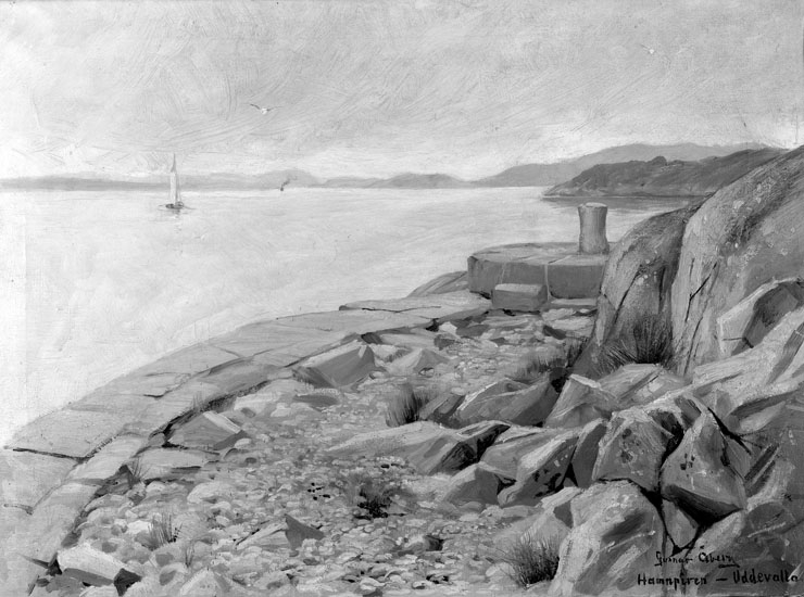 "Tavla av Gunnar Åberg. "Hamnpiren U-a." enligt uppgift av fotografen