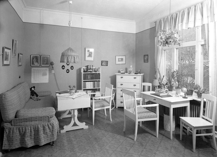 Uppgift enligt fotografen: "Uddevalla. Interiör fru Toni Wikborgs hem Ådalsgatan 4."