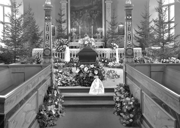 Uppgift enligt fotografen: "Uddevalla. Kyrkan. Fru Thorells begravning."