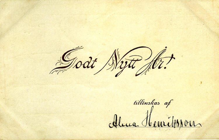 Notering på kortet: Godt Nytt År! tillönskas af Alma Henriksson.