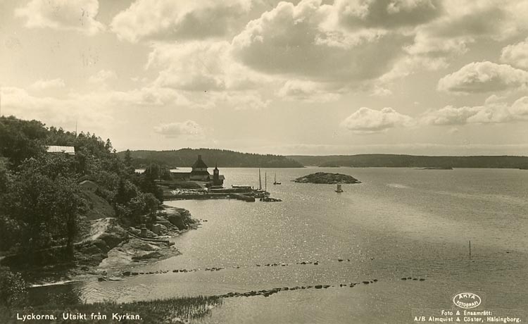 Enligt Bengt Lundins noteringar: "Utsikt från kyrkan. Ångbåtsbryggan i motljus".