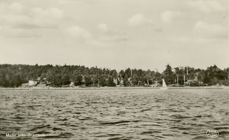 Enligt Bengt Lundins noteringar: "Motiv från Dramsvik med segelbåt".