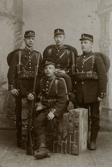 Enligt Bengt Lundins noteringar: "Ateljefoto av kvartett i rustning".