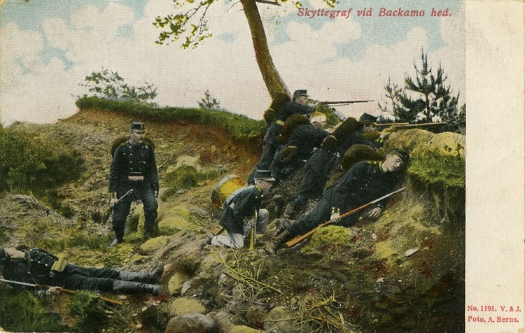 Enligt Bengt Lundins noteringar: "Skyttegrav vid Backamo hed. Stridsövning".