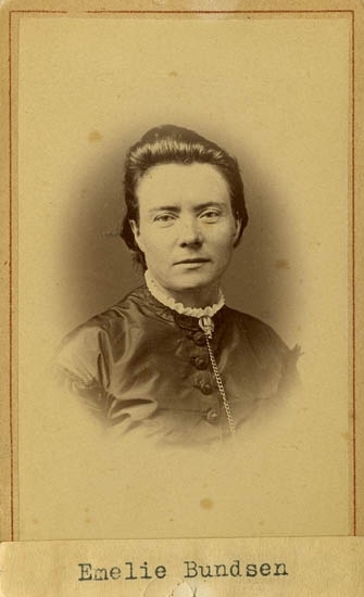 Text på kortets baksida: "Emilia Innosanta Aurora Bundsen. Född 18/1 1830.