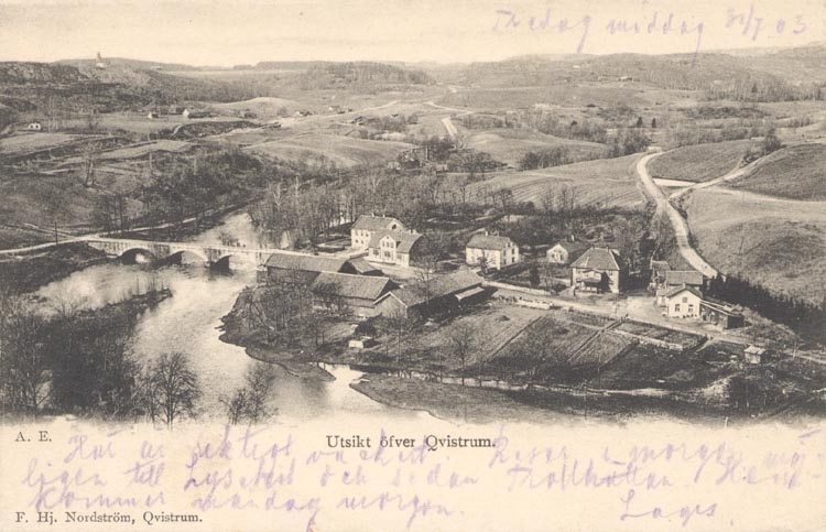 Tryckt text på kortet: "Utsikt öfver Qvistrum".