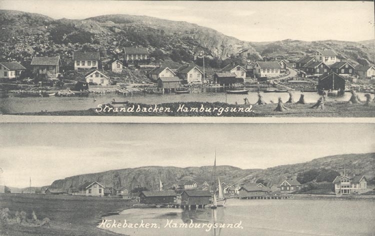 Tryckt text på kortet: "Strandbacken, Hamburgsund".