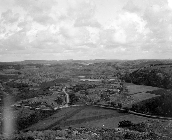 Enligt text som medföljde bilden: "Utsikt inåt landet från berget vid Essviken."