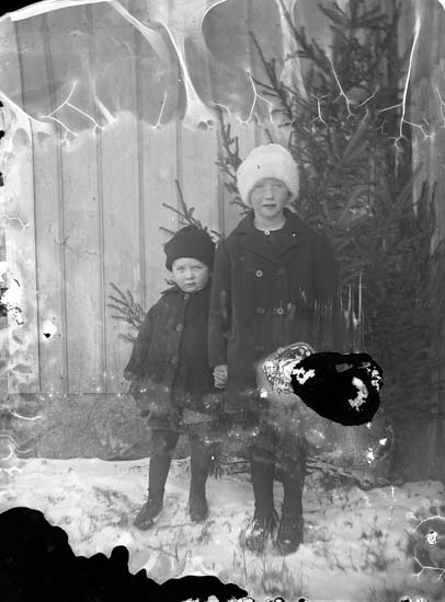 Enligt notering: "Två barn med julgran".