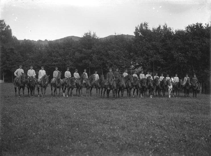 Enligt fotografens noteringar: "Militärer. Ryttare från 1914 förlagda vid Åtorp."