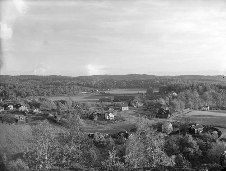 Enligt fotografens noteringar: "Lycke omkring ? nedre 1920. Munkedal utsikt från Gubbens näsa."