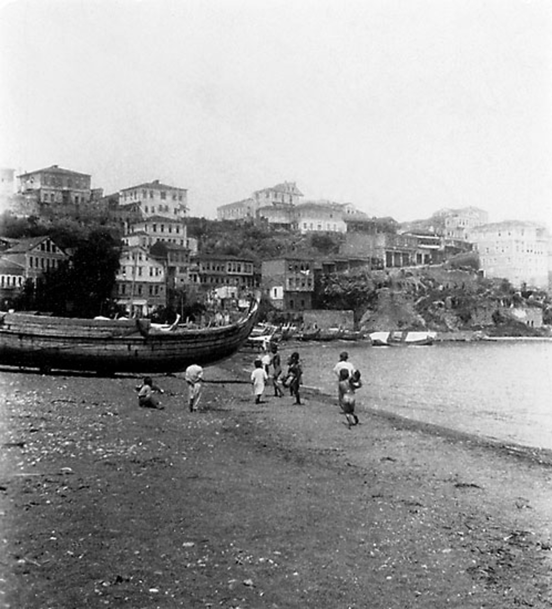 Skrivet på baksidan: "Vikingaskepp liknande "Mahonas" uppdragna på land i Trabzon."