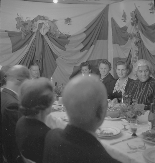 Titel: Text till bilden: "Sjukhuset. Syster Annie, Avskedsmiddag. 1945.10.04".
