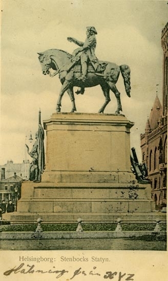 Notering på kortet: Helsingborg. Stenbocks Statyn.
