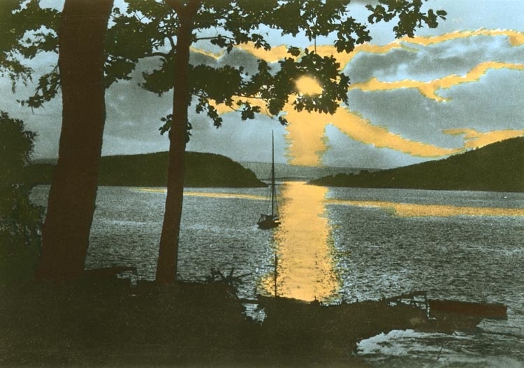 Enligt Bengt Lundins noteringar: "Ljungskile. Solnedgång över Ulvöbaden".