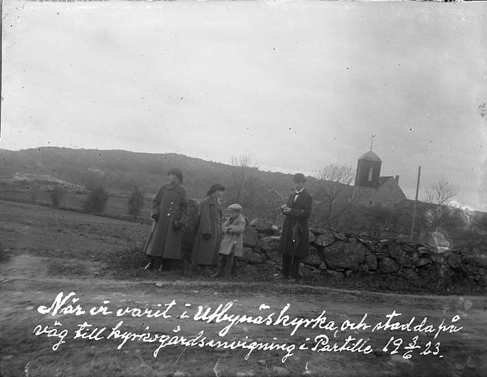 Enligt text på fotot: "När vi varit i Utbynäskyrka, och stadda på väg till kyrkogårdsinvigning i Partille 3/6 1923".