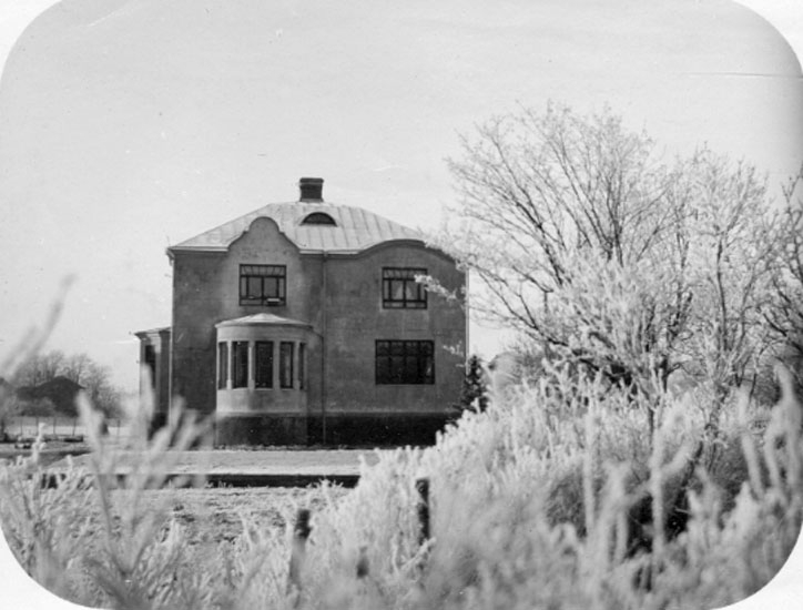 Bilden var uppklistrad på ett A4 papper. På papperet under bilden stod följande handskrivna text: "Hjalmar Zachaus villa på söder i Uddevalla".