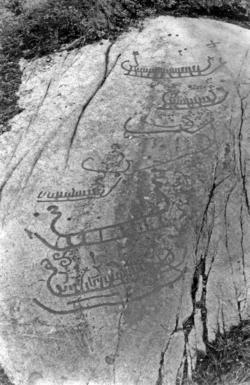 Enligt text: "1729 Bottna sn, n:r 14. Vrångstad (Ekhoff 148) Hällr. nr 3. Ett par mindre figurer till höger ej synliga. Fr. VNV. Foto den 10.9.43 Å.F".