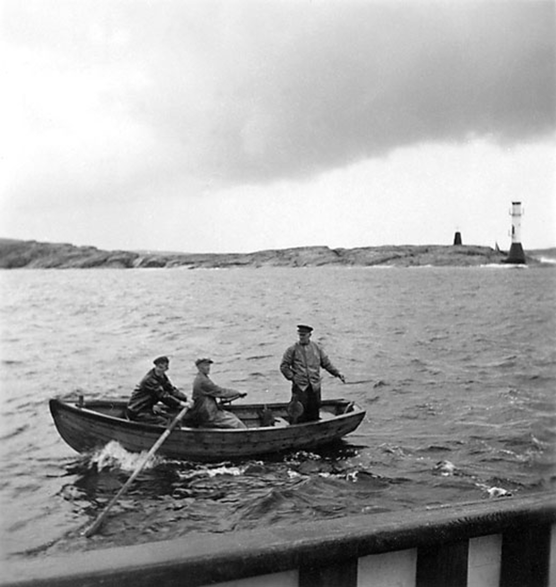 "Kännejullen" innanför Kråkesunds gap. Fr.v.: Arne Albertsson, ?, Axel Andreasson.