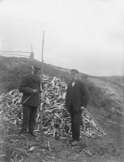 Enligt noteringar: "Vid vedhögen. Johannes A. och en okänd".