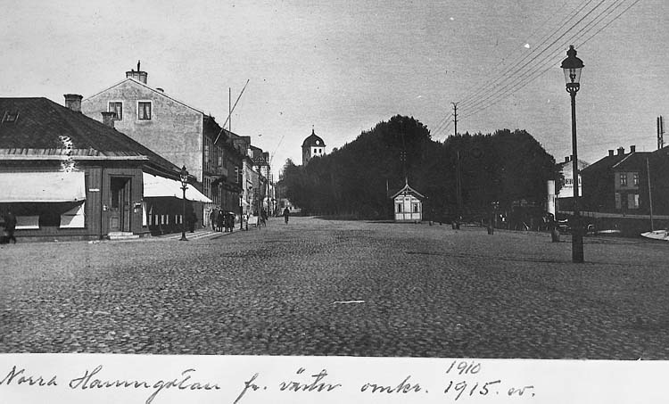 Text på kortet: "Norra Hamngatan fr väster omkr. 1910-1915 ev.".