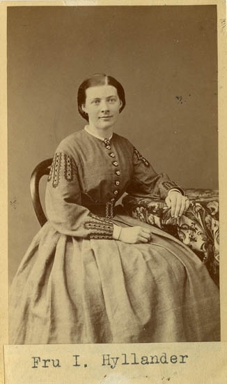 Text på kortets baksida: "Fru Ingeborg Hylander, f Thudén. (Tvillingsyster till Maggi Berndson, Holma)".