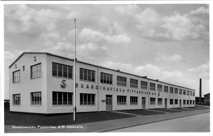 Tryckt text på vykortets framsida: "Skandinaviska Pipfabriken A/B Uddevalla."