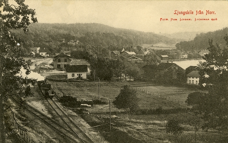 Enligt Bengt Lundins noteringar: "Ljungskile från norr. Stationsområdet med byggnation".