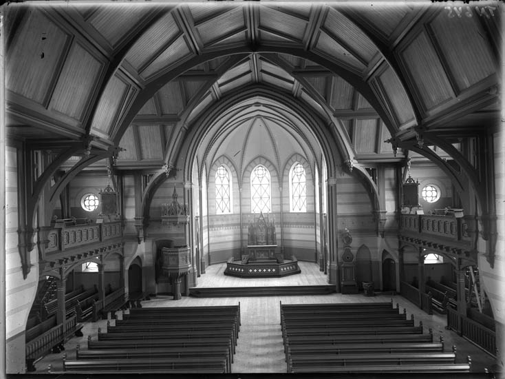 Enligt tidigare noteringar: "Interiör från Högsäters kyrka, koret med altaret."