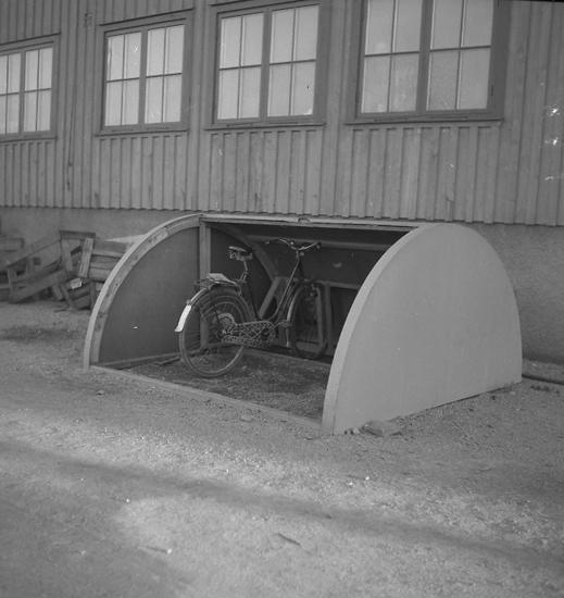 Text till bilden: "Cykelställ. Karlsbergs Snickerifabrik. 1945.12.14".