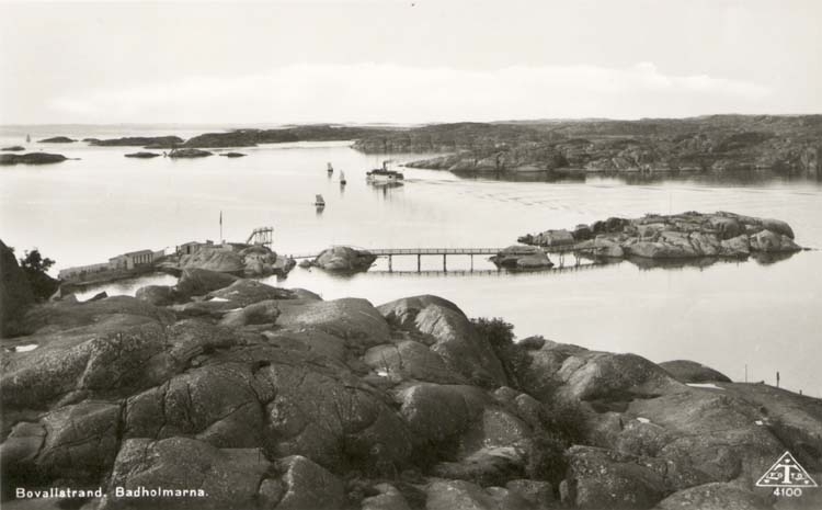 Tryckt text på kortet: "Bovallstrand. Badholmarna."