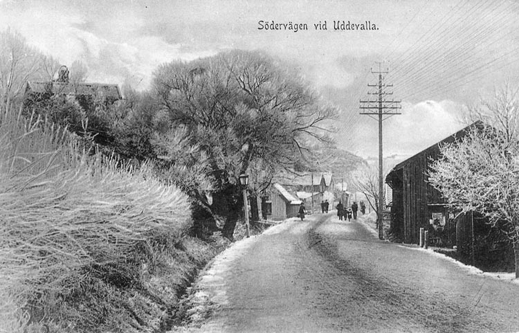 Tryckt text på vykortets framsida: "Södervägen vid Uddevalla".