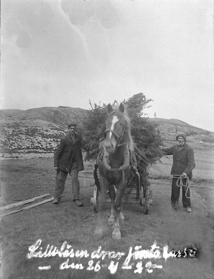 Enligt noteringar: "Lillbläsen drar första lasset. Johan och Johannes A".