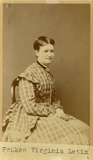 Text på kortets baksida: "Lärarinna Virginia Lektin, dotter till Gustaf Henrik Letin och Aurora Sofia Letin. Lärarinna i Göteborg".