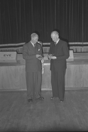 Titel: Text till bilden: "W. B. Konsum. Prisutdelning. Folkets Hus. B-sal. 1949.12.14" i