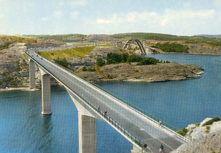 Tryckt text på kortet: "Högbroarna i nya Tjörn och Orustleden mellan Stenungsön och Almön."