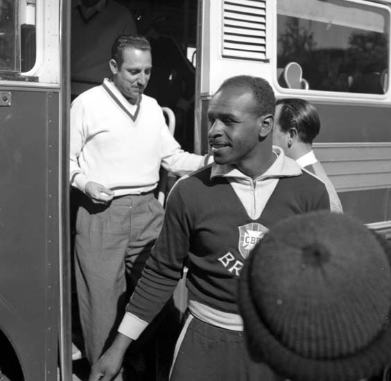 Brasilianska fotbollslaget anländer till Uddevalla för att bekanta sig med Rimnersvallen inför matchen på söndag kväll mot Österrike