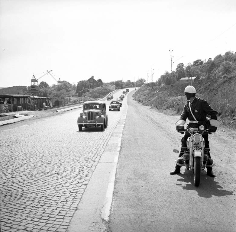 Trafikkontroll vid norra infarten till Uddevalla pingsten 1960
