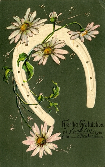 Notering på kortet: Hjärtlig Gratulation på födelsedagen från Karoline.