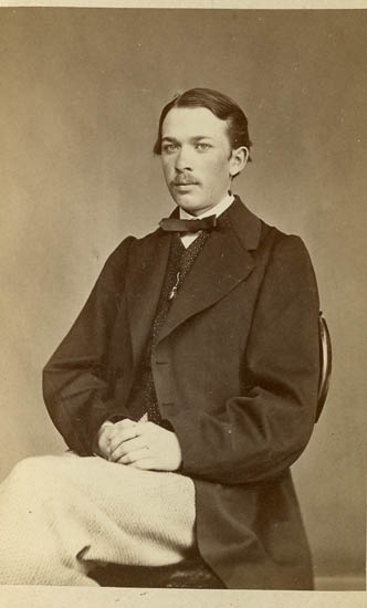 Text på kortets baksida: "Bokhållaren Gustaf Michael Hegardt, f. 1846 d. 1875. Gift med Anna Hilda Christina Carlström, f. 1849".