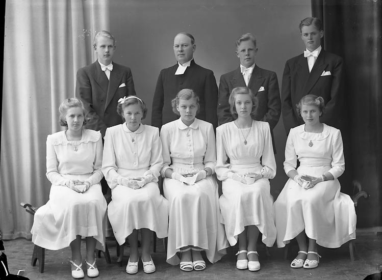 Enligt fotografens journal nr 8 1951-1957: "Norums Konfirmander Pastor Hjalmarsson".