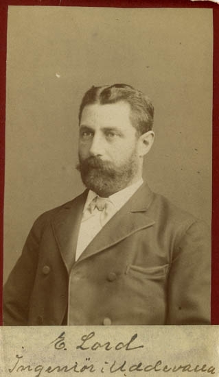 Text på kortets baksida: "Emanuel Lord, ingenjör i Uddevalla. F. 1850".