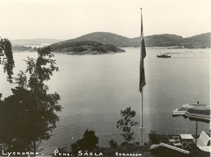 Titel: Enligt Bengt Lundins noteringar: "Utsikt från Särla Pensionat. Lyckorna. Terassen".