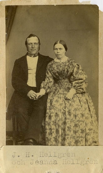 Text på kortets baksida: "Handlanden J.H. Hellgren och Jeanna Hellgren".