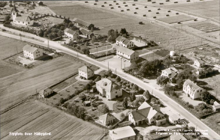 Tryckt text på kortet: "Flygfoto över Håbygård".