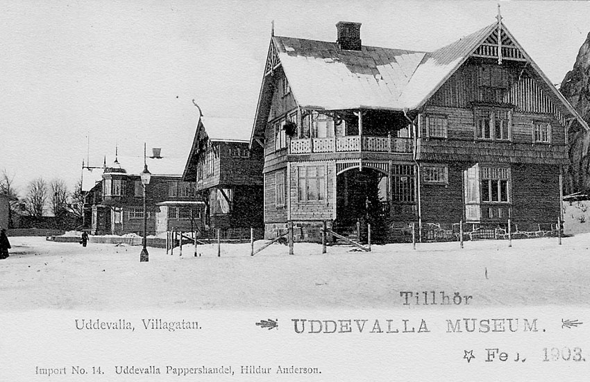 Tryckt text på vykortets framsida: "Uddevalla. Villagatan".
